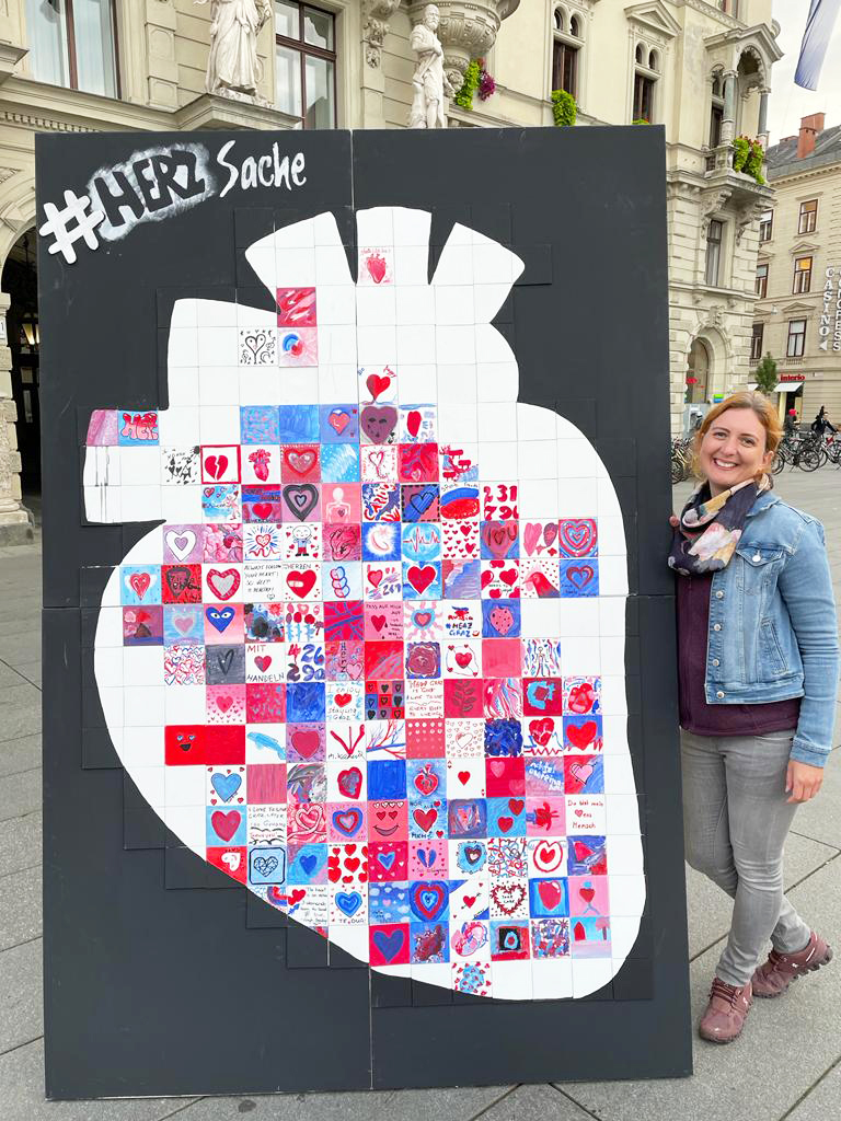 Diese Woche geht das Herz-Kunstwerk zusammen mit dem Atherosklerose-Modell auf Reisen und wird am heutigen Weltherztag, dem 29.09., und am 30.09. am Hauptplatz von Villach zu finden sein.